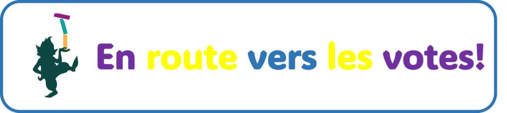 Avant le vote, nous vous proposerons un « contes à rebours », 12 jours, 12 devinettes par des élèves ou médiathécaires pour vous faire attendre le jour du scrutin. Si vous le souhaitez, vous pouvez nous envoyer une courte vidéo avec devinette, jeu ou charade et nous l’inclurons dans notre « conte à rebours »